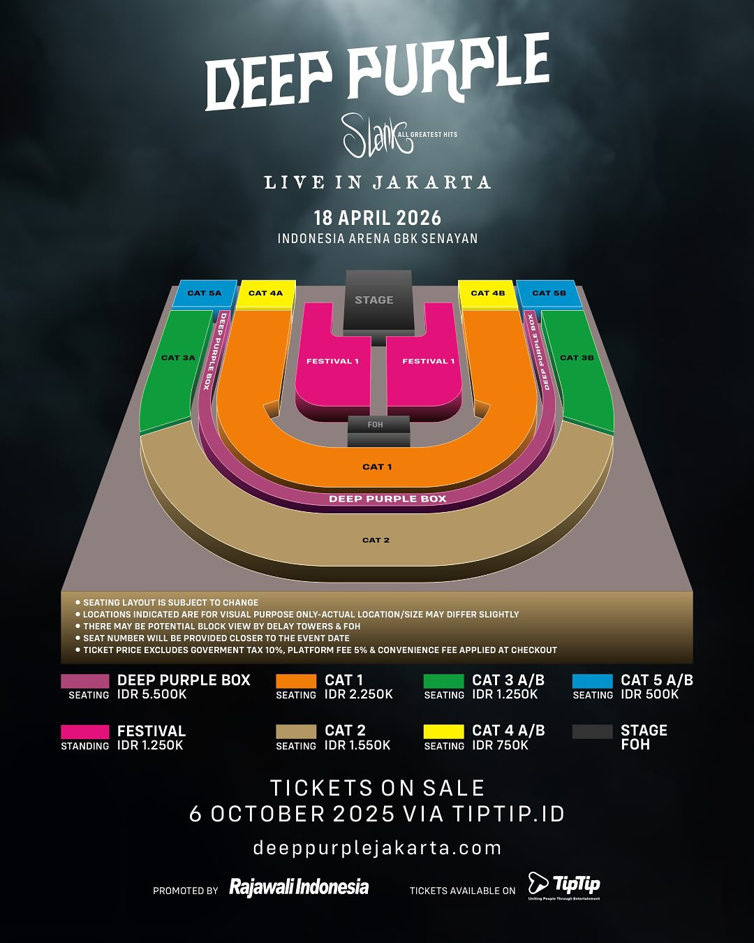 "Untuk pertama kalinya, dua kekuatan monumental di dunia musik akan berbagi satu panggung di Jakarta. Bersiaplah untuk malam legendaris di mana pelopor hard rock dan heavy metal Inggris, DEEP PURPLE, akan membawakan lagu-lagu terbaik mereka, sementara pahlawan rock Indonesia, SLANK, akan membawa Anda kembali ke akar mereka dengan rangkaian lagu spesial yang eksklusif dari album-album awal mereka!" promotor melanjutkan dalam unggahannya.